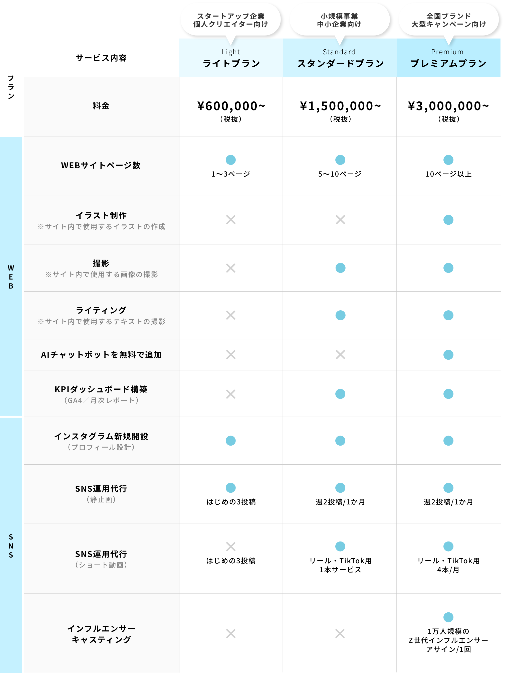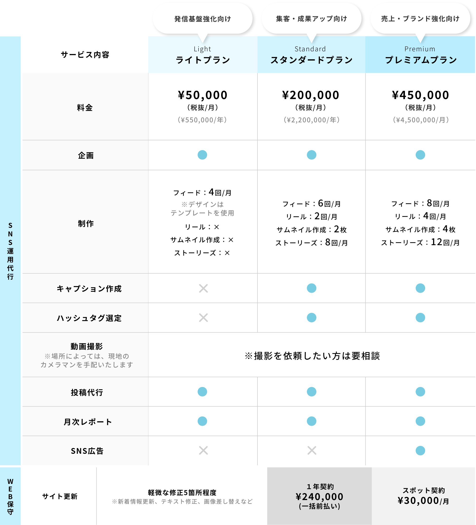 ※ライトプランでは、お客様に以下の素材をご用意いただきます:テキスト、ハッシュタグ、画像や動画など